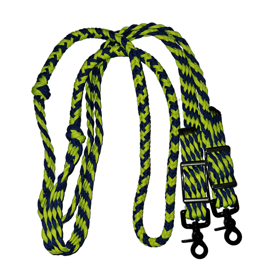 Synlige tøyler i neong gul og elektrisk blå farger. De minner kanskje om fargene til en politibil.